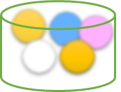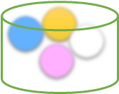 - 白,ピンク,黄色,水色の4色のボールをコップに入れたら,コップをおいて新しいコップを取る