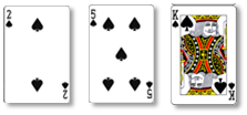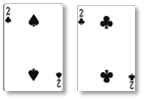 - 例 2が2枚 2×2で4点 10が2枚 10×2で20点 Kは13となります。13×2で26点 で50点。